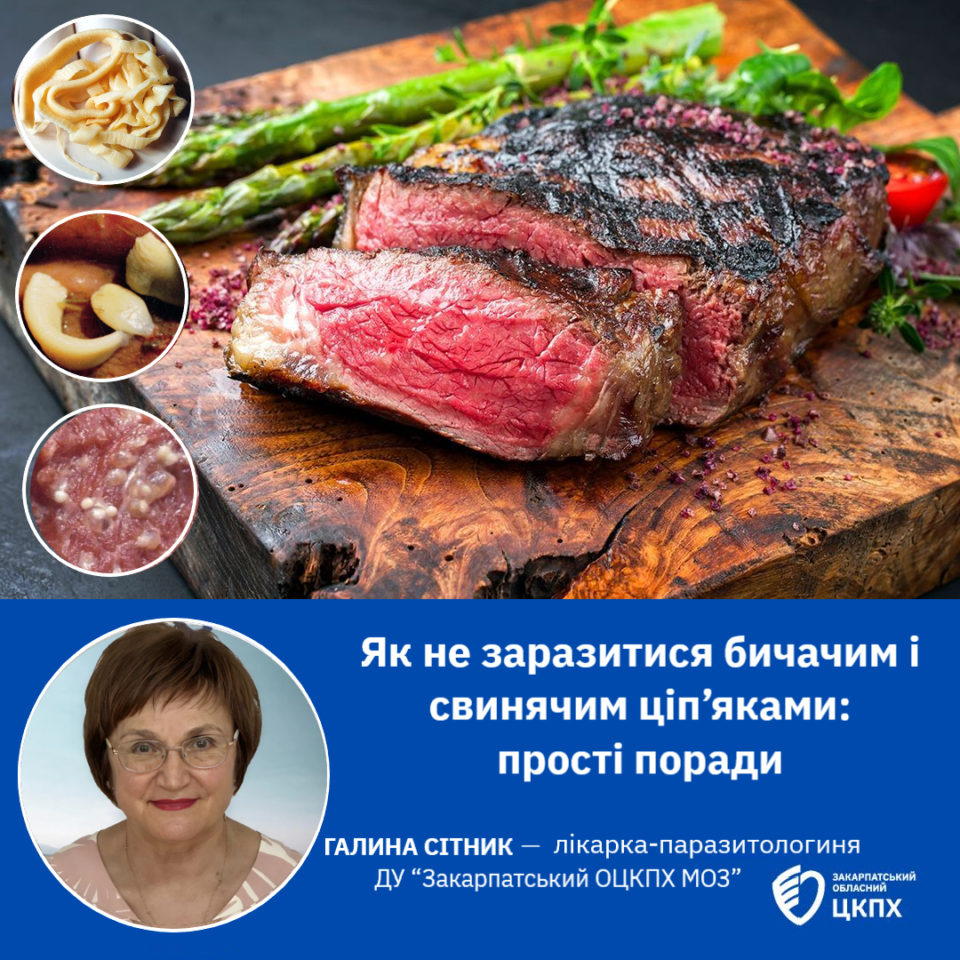 У нашій області нещодавно зареєстровано випадок такого паразитарного захворювання, як теніаринхоз, збудником якого є Taenia saginata (бичачий ціп’як). Дуже подібним до теніаринхозу є також теніоз, який виникає внаслідок паразитування в людському організмі свинячого ціп’яка (Taenia solium). Обидва захворювання відноситься до групи цестодозів (стрічкових) гельмінтозів, а збудники їх (ціп’яки) можуть рости в кишечнику людини роками, досягаючи довжини від 2 до 12 метрів, виснажуючи організм та отруюючи його продуктами своєї життєдіяльності.