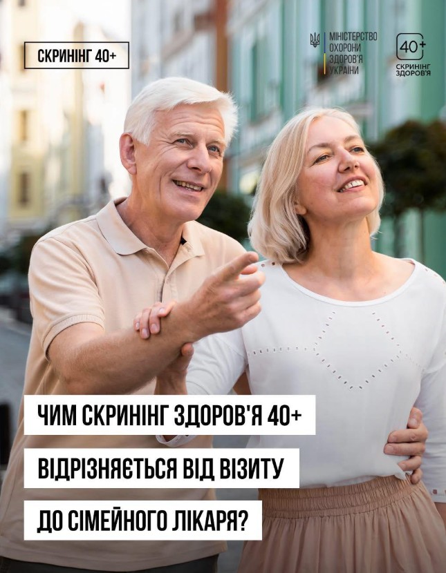 Мета національної програми «Скринінг здоров’я 40+» — допомогти людям віком від 40 років вчасно виявляти фактори ризику та хронічні захворювання, які часто тривалий час протікають без симптомів. Насамперед ідеться про серцево-судинні захворювання та цукровий діабет 2 типу.