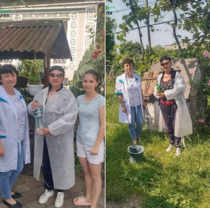 Фахівці Ужгородської філії ДУ “Закарпатський ОЦКПХ МОЗ” — лікарка загальної гігієни Наталія Кузнева та санітарна фельдшерка лабораторного відділення Ганна Поп — здійснюють відбір зразків питної води з колодязів у межах децентралізованого водопостачання.