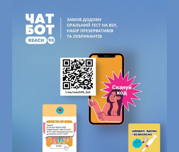 📣До Всесвітнього дня сексуального здоров’я, який щорічно відзначається 4 вересня, REACH 95 запустив чат-бот, де можна замовити оральний тест для самотестування на ВІЛ і провести його в комфортних для себе умовах.