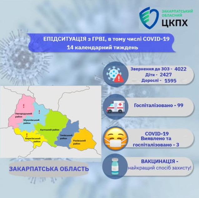 Епідситуація з ГРВІ, в тому числі COVID-19 (14 календарний тиждень)