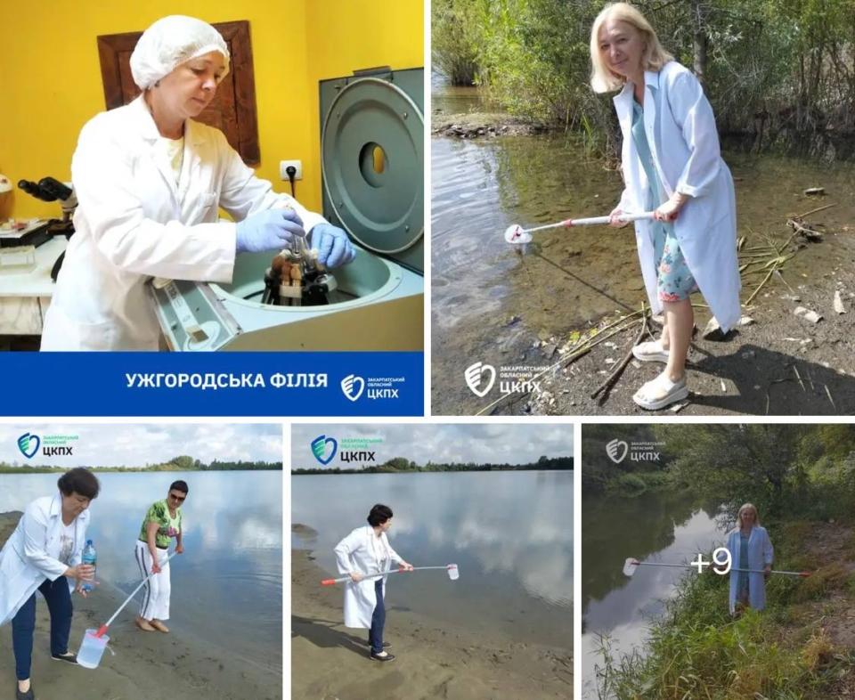 Лікарка-паразитолог Наталія Лабатій здійснила відбір зразків води з відкритих водоймищ Ужгорода та району для дослідження на наявність збудників паразитарних хвороб. Робота проводиться відповідно до наказу МОЗ України №721.