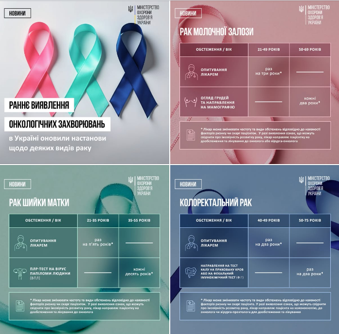 🩺 1 січня 2025 року в Україні набув чинності наказ (https://bit.ly/3EpgRsW) про порядок скринінгу та ранньої діагностики деяких видів раку, а також моніторингу стану здоров’я пацієнтів з груп ризику.