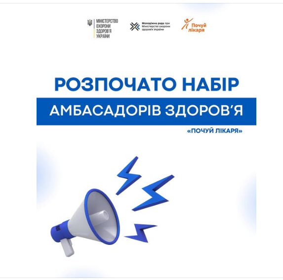 Почався набір амбасадорів здоровʼя «Почуй лікаря» для роботи з молоддю та у громадах