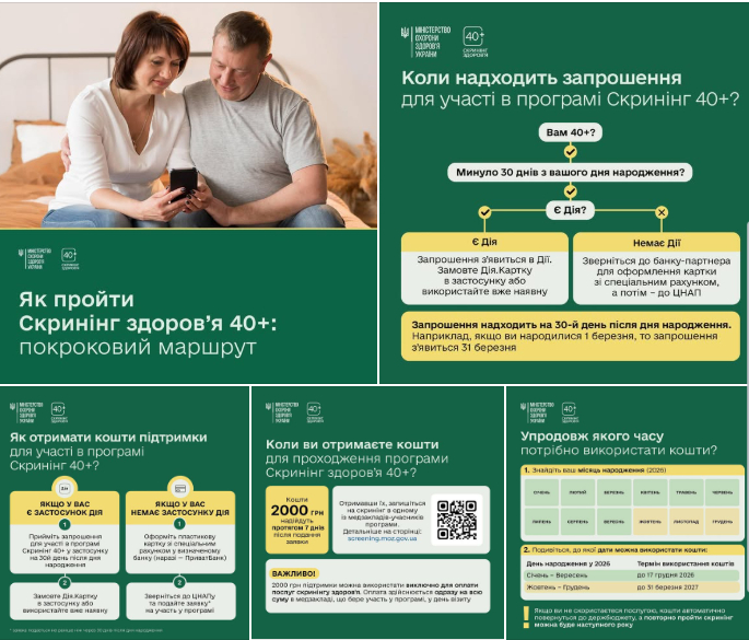 Уже за лічені дні українці та українки отримають перші запрошення на Скринінг здоров’я 40+!