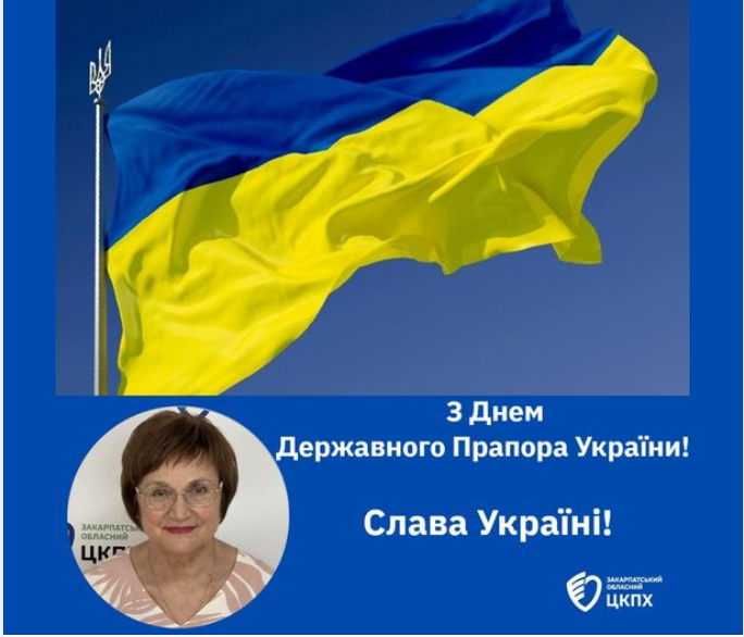 🔸Генеральна директорка Державної установи “Закарпатський обласний центр контролю та профілактики хвороб Міністерства охорони здоров’я України”, головна державна санітарна лікарка Закарпатської області Галина Сітник та колектив установи щиро вітають усіх українців з Днем Державного Прапора України!