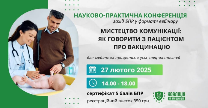 📢Шановні медичні працівники! ГС Коаліція за Вакцинацію запрошує на науково-практичну конференцію «Мистецтво комунікації: як говорити з пацієнтом про вакцинацію» 📆27 лютого з 14.00 до 18.00.